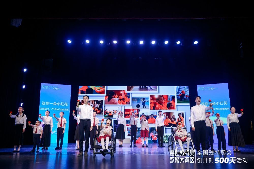 当天下午,残特奥会开幕500天倒计时文艺演出在广州市少年宫拉开帷幕。视障提琴演奏家王子安等人表演的器乐合奏《花儿为什么这样红》、广州国际残障人文化交流中心张舒勋美声独唱《五星红旗》,广州市社会福利院节目《送你一朵小红花》、广州启明学校的盲生合唱《光亮》、广州市少年宫藏族舞蹈《心声》等,展现残疾人多才多艺、阳光向上的良好精神状态和残健共融的社会氛围。现场还举办了“第三届粤港澳大湾区公益网络微电影大赛”启动仪式。