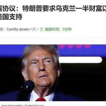 但特朗普可不管乌克兰收到多少钱。17日英媒《每日电讯报》曝光了一份据称是美国要求泽连斯基签字的交易协议,内容包括乌克兰应该“赔偿”5000亿美元,美国有权利从乌克兰矿产开采中获得50%的利润等等。